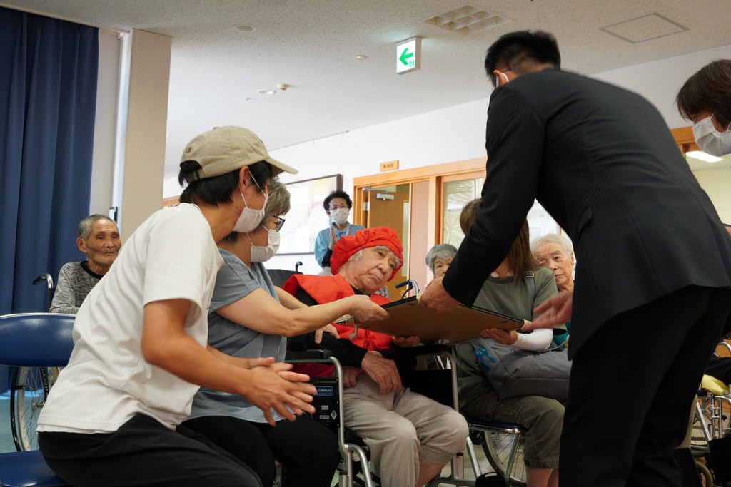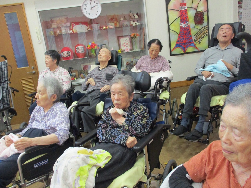 長寿の祝いがありました。 米寿のお祝いです。ご家族にも参加していただき、一緒にお祝いをさせて頂きました。 「おやじライブ」様の演奏にみんなで聞き入りました。 これからも元気に過ごしてください(^^)/ 高齢者向け施設 なかざと 清水ヒカリ座にて観劇 スポーツの秋② 関連記事 清水ヒカリ座にて観劇 2025年10月 するがユニット バナナケーキ作り 2025年10月 楽寿園へ ~新幹線での旅~ 2025年10月 令和7年度 敬老会 2025年10月 ふじみ町での日常、ユニット企画 2025年10月 するがユニット 麩レンチトースト 2025年10月 駄菓子バイキング 2025年10月 敬老会 2025年10月