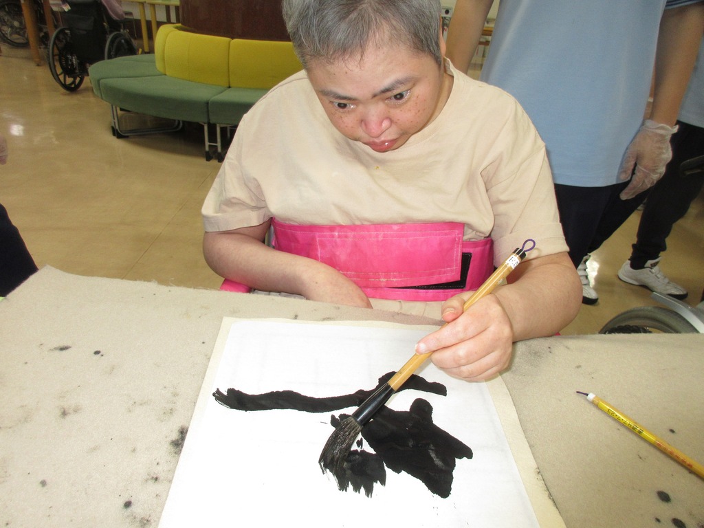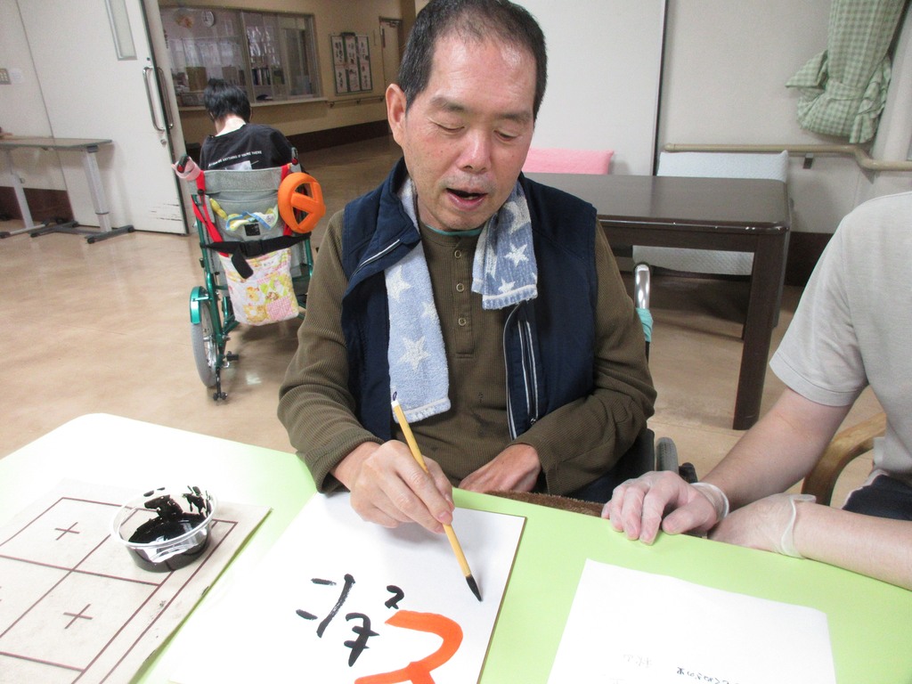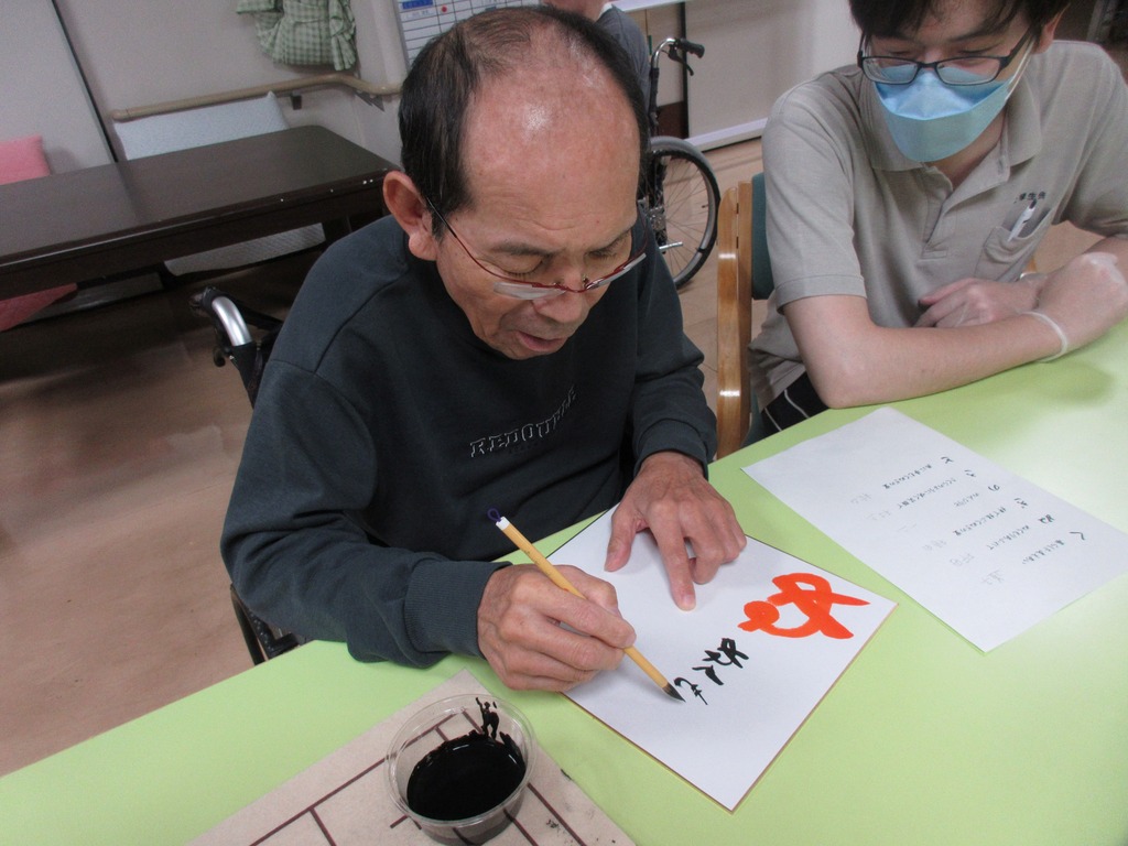書道クラブでは毎月、季節の言葉を利用者様が選んで書いていただいております。