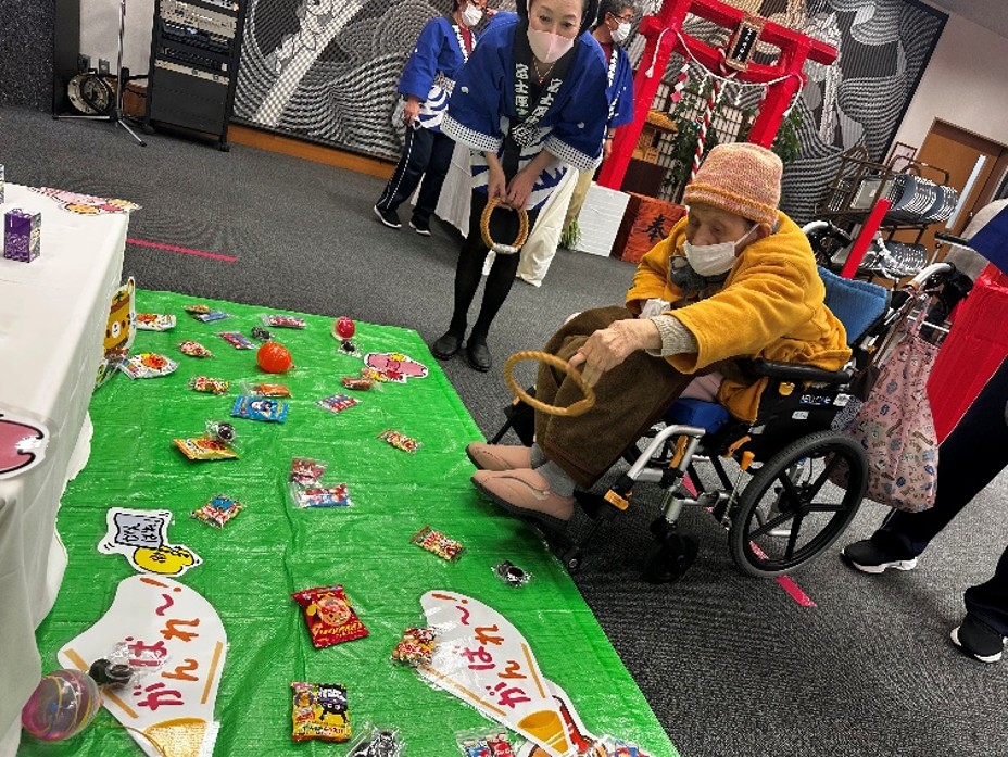 輪投げも楽しみました。お菓子・ジュース・コーヒーと色々ありすぎて・・・悩みながら輪投げを楽しまれました。届くかな・・入るかな?