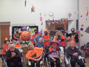 施設長を先頭に、光輝くお神輿を利用者、職員の掛け声でワッショイ!ワッショイ! うちわと手拍子で利用者様のテーブルを練り歩きです。とても賑やかな秋祭りのスタートが出来ました。