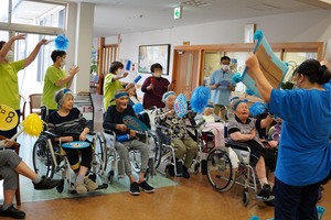 お祭りの最後は職員の踊りです。清水港かっぽれ、青森ねぶたかっぽれ、沖縄エイサーかっぽれ・・施設長も職員も汗だくでした。呼吸を整えるのに必死になりながら利用者の方々を楽しませてくれました。