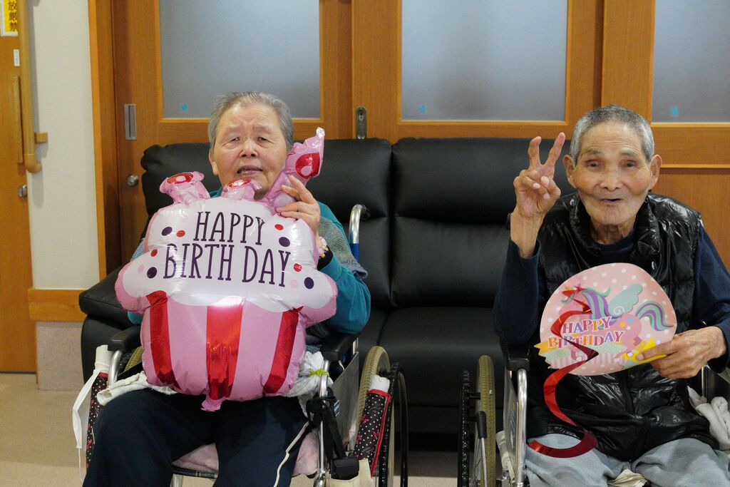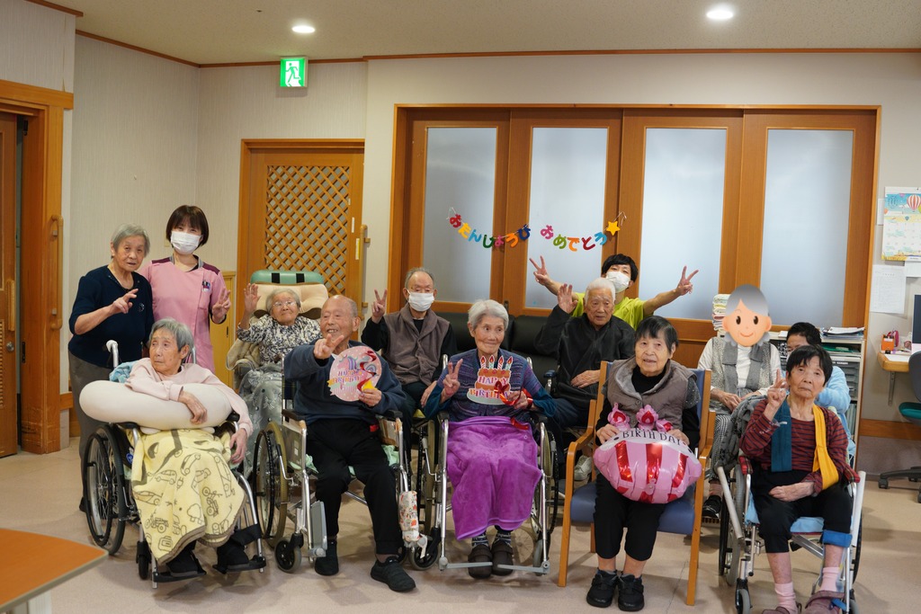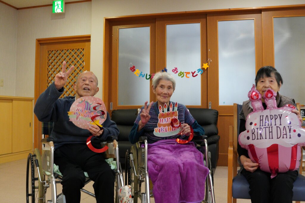 今月誕生月の3名様。みんなからお祝いされて嬉しいような照れくさいような。
