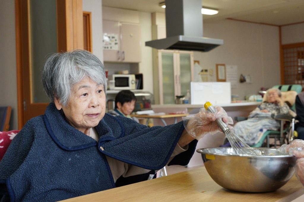 2ユニット合同で誕生会を行いました。誕生日ケーキをみんなで作ります。
