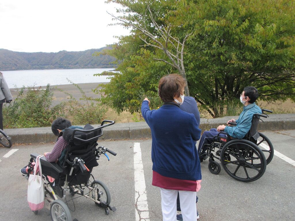 本栖湖へ紅葉ドライブに行ってきました。秋の涼しさと景色に癒され、ほっこり気分♪景色を見ながらの飲み物はより美味しく感じますね~ 障がい者向け施設 三和荘 お出かけ~♪ タオル寄贈 関連記事 1月のにこりほっと 2026年2月 南部駅伝(くぬぎの里) 2026年2月 繭玉づくり・どんど焼き🍡 2026年2月 第23回南部町駅伝・マラソン大会参加報告 2026年2月 どんど焼き 2026年2月 クリスマス会 2026年2月 くぬぎの里の年末年始 2026年1月 お正月遊び🎍 2026年1月