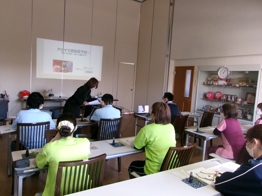 JAA認定トップインストラクターであり、介護アロマセラピストである大吉章子先生をお招きし、アロマ研修を行いました。「香り」の奥深さを学ぶことができました。 高齢者向け施設 なかざと ふじ 誕生日外出 関連記事 ふじ 誕生日外出 2026年2月 第23回南部町駅伝・マラソン大会参加報告 2026年2月 富士宮浅間大社 1月20日初詣 2026年1月 まゆ玉(なかざと) 2026年1月 初詣 2026年1月 お屠蘇 2026年1月 餅つき 2026年1月 富士山女子駅伝応援 2026年1月