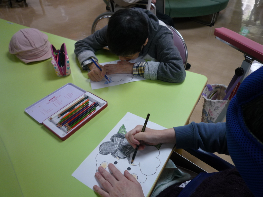 デイルームは創作の時間に利用者様と一緒に色塗りした絵を飾りました♪今年も無病息災で過ごせますように!!